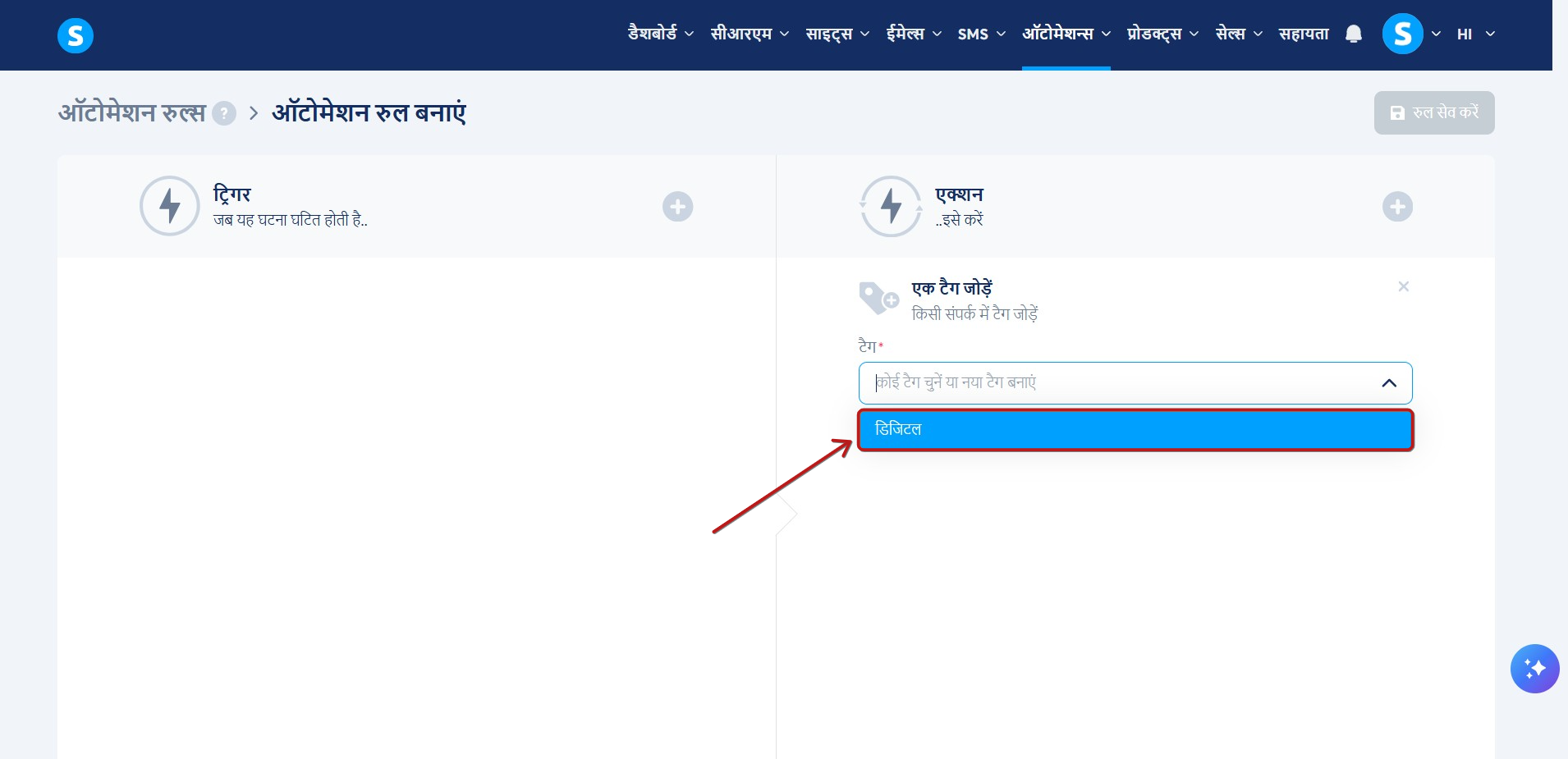 आप सीधे औटोमेटिक नियमों के भीतर एक नया टैग भी बना सकते हैं। बस उस टैग का नाम इंटर करें जिसे आप बनाना चाहते हैं औरऔटोमेटिक नियम में उपयोग करना चाहते हैं, और यह औटोमेटिक रूप से बन जाएगा।