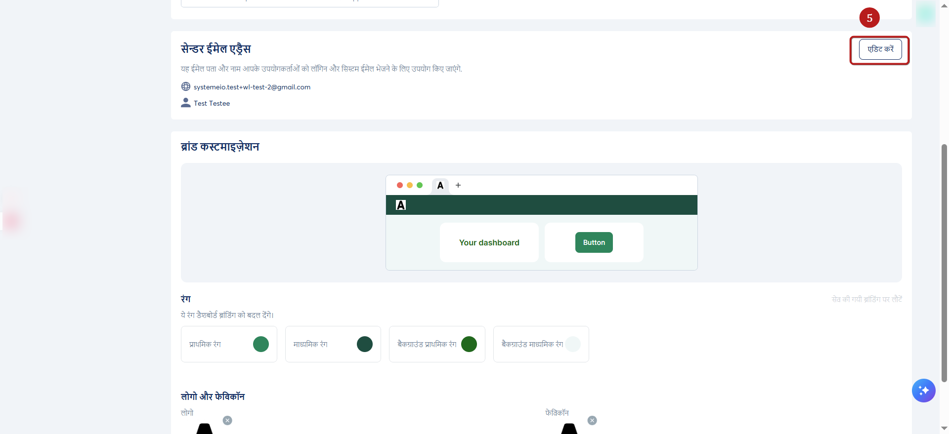 आपका ब्रांडिंग अनुकूलन (लोगो, फ़ेविकॉन और रंग) व्हाइट लेबल उपयोगकर्ता डैशबोर्ड, लॉगिन और पंजीकरण पृष्ठों और व्हाइट लेबल उपयोगकर्ताओं को भेजे गए लेन-देन संबंधी ईमेल पर लागू किया जाएगा।