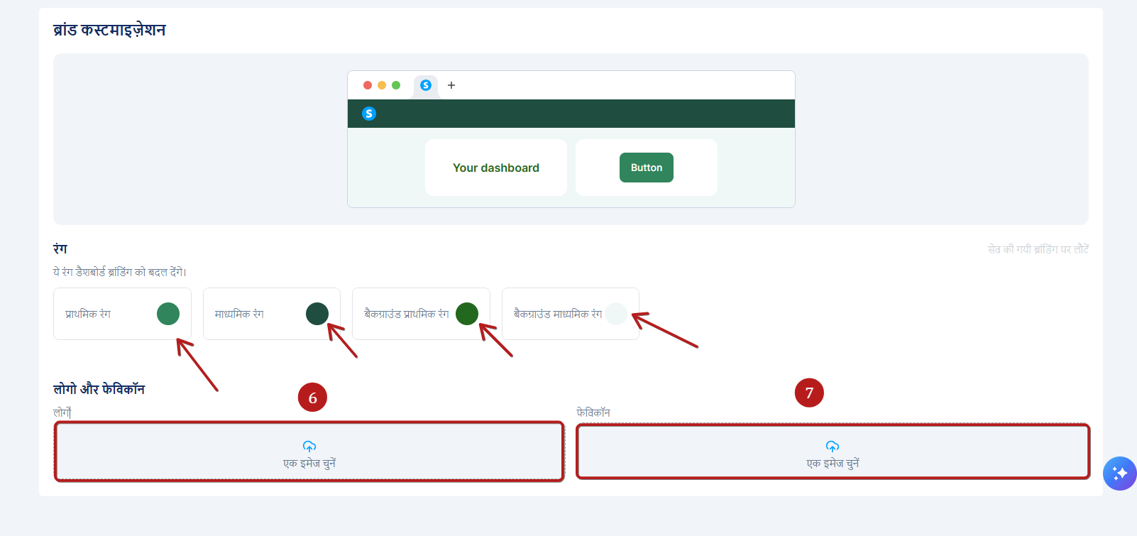 - अपना लोगो (6) और फ़ेविकॉन (7) चित्र अपलोड करने के लिए एक छवि चुनें पर क्लिक करें।