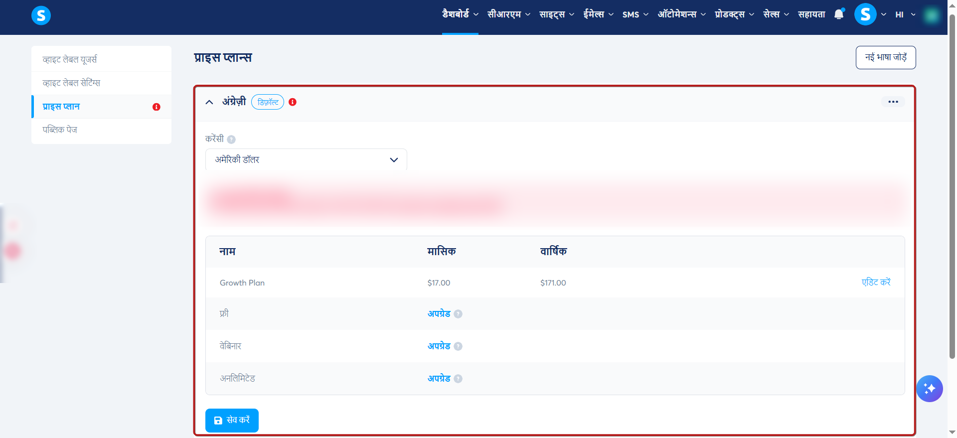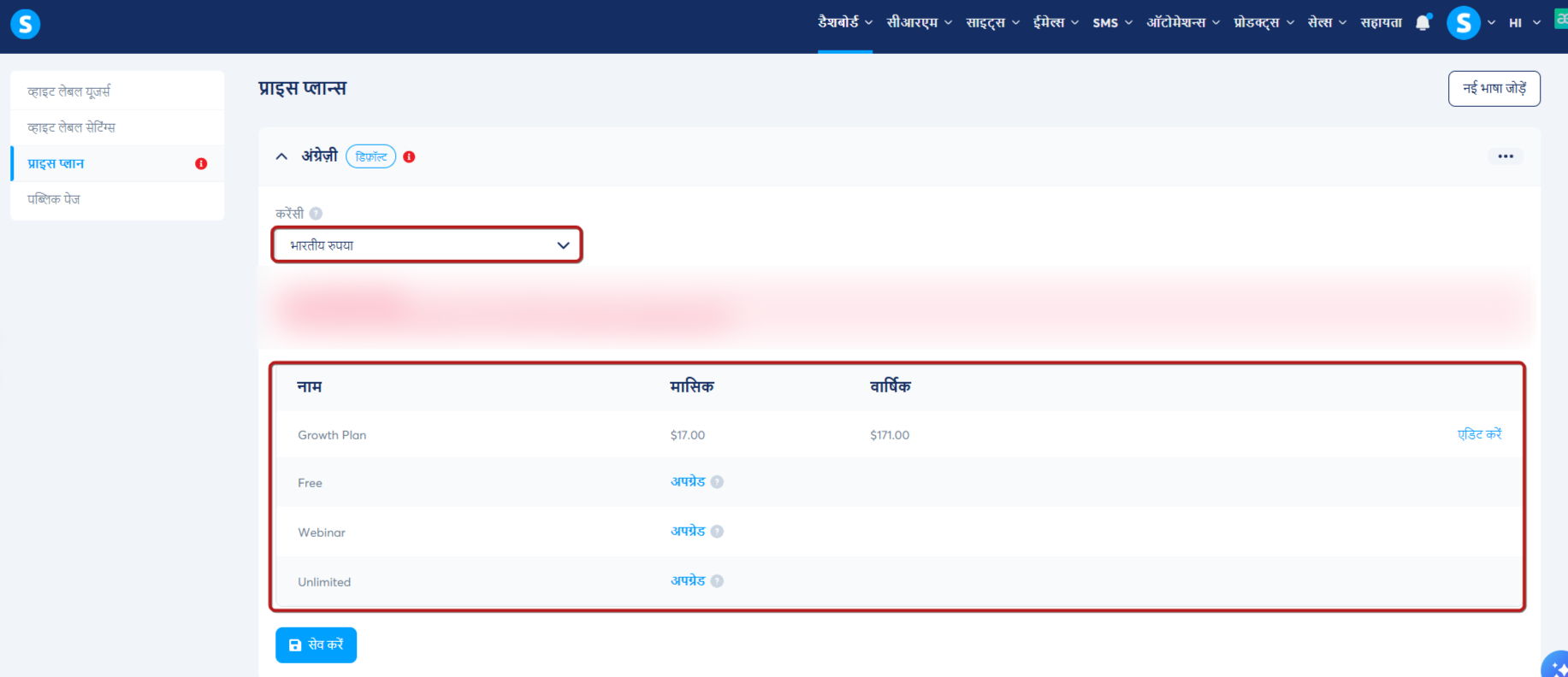 - व्हाइट लेबल उपयोगकर्ता अपनी योजनाओं को अपग्रेड करने के लिए आपके द्वारा बनाई गई मूल्य योजनाओं का उपयोग करेंगे।