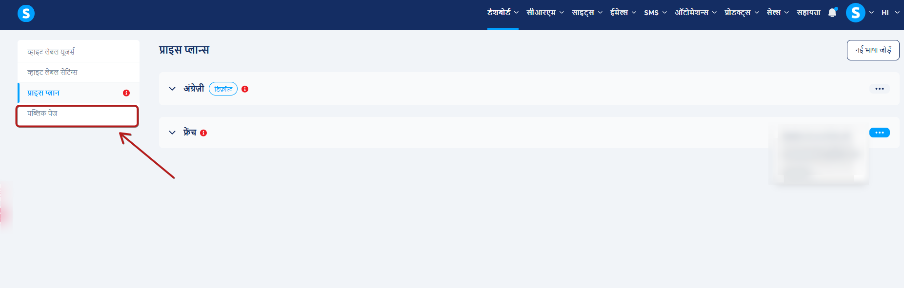 आप अपने White लेबल डैशबोर्ड में सार्वजनिक पेज टैब से सीधे अपने सार्वजनिक पेजों को एक्सेस और संपादित कर सकते हैं.