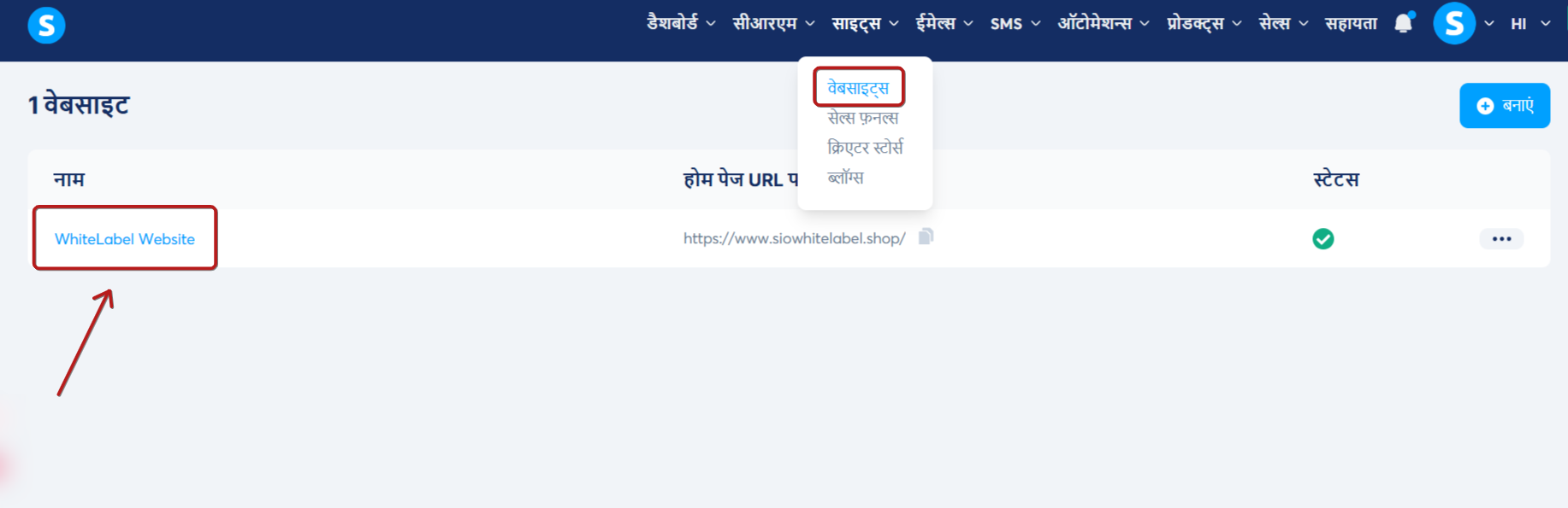 आप साइट के टैब के तहत वेबसाइटों के माध्यम से भी अपनी वेबसाइट तक पहुंच सकते हैं, जहां यह "व्हाइटलेबल वेबसाइट" के रूप में दिखाई देगी।