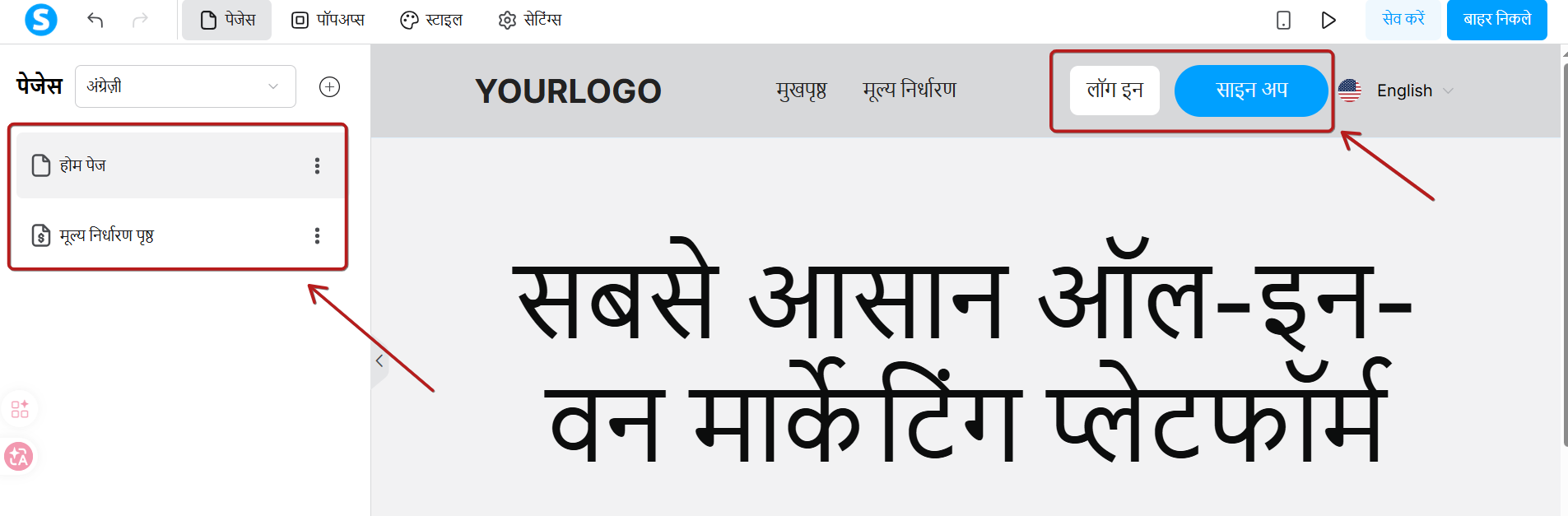 - मुखपृष्ठ: आपके व्हाइट लेबल डोमेन के लिए मुख्य लैंडिंग पृष्ठ