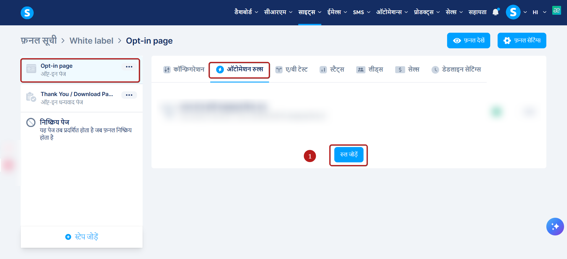 ऑप्ट-इन पृष्ठ पर, ऑटोमेशन टैब पर जाएँ, रूल जोड़ें (1) पर क्लिक करें.