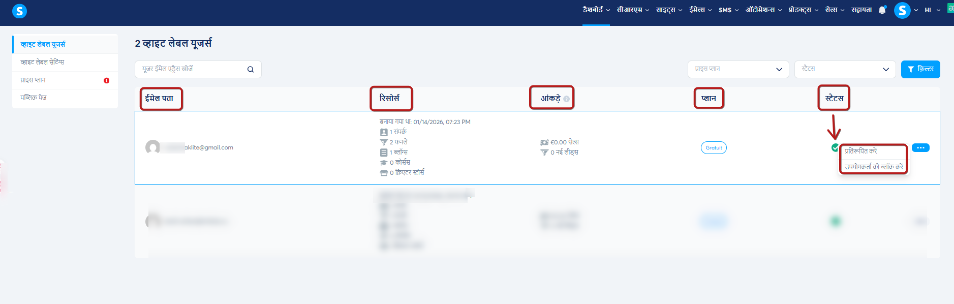 एक बार व्हाइट लेबल खाते बन जाने के बाद, आप उन्हें व्हाइट लेबल उपयोगकर्ता डैशबोर्ड से देख और प्रबंधित कर सकते हैं।