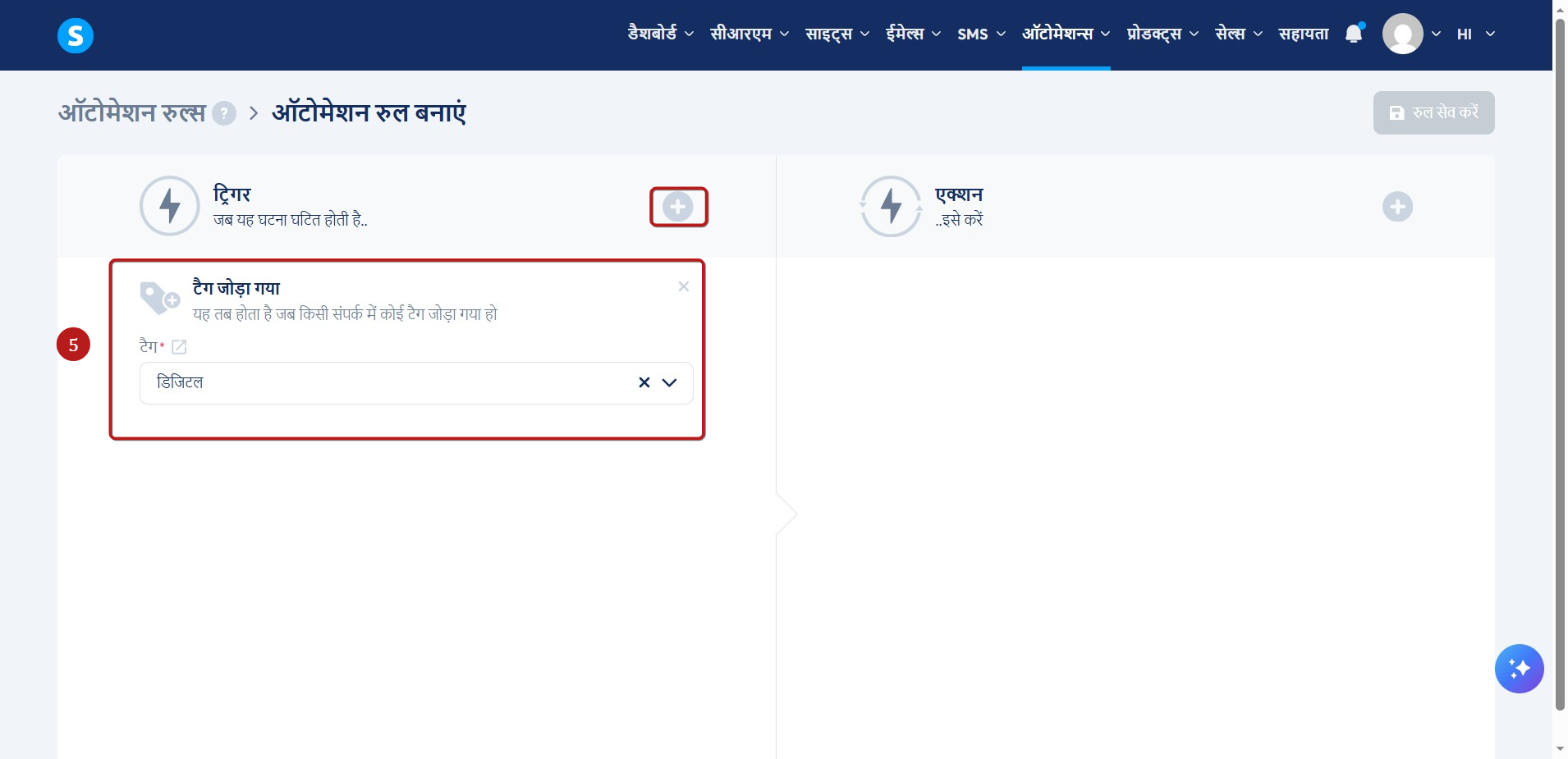 ट्रिगर के रूप में टैग जोड़ा गया (5) चुनें।