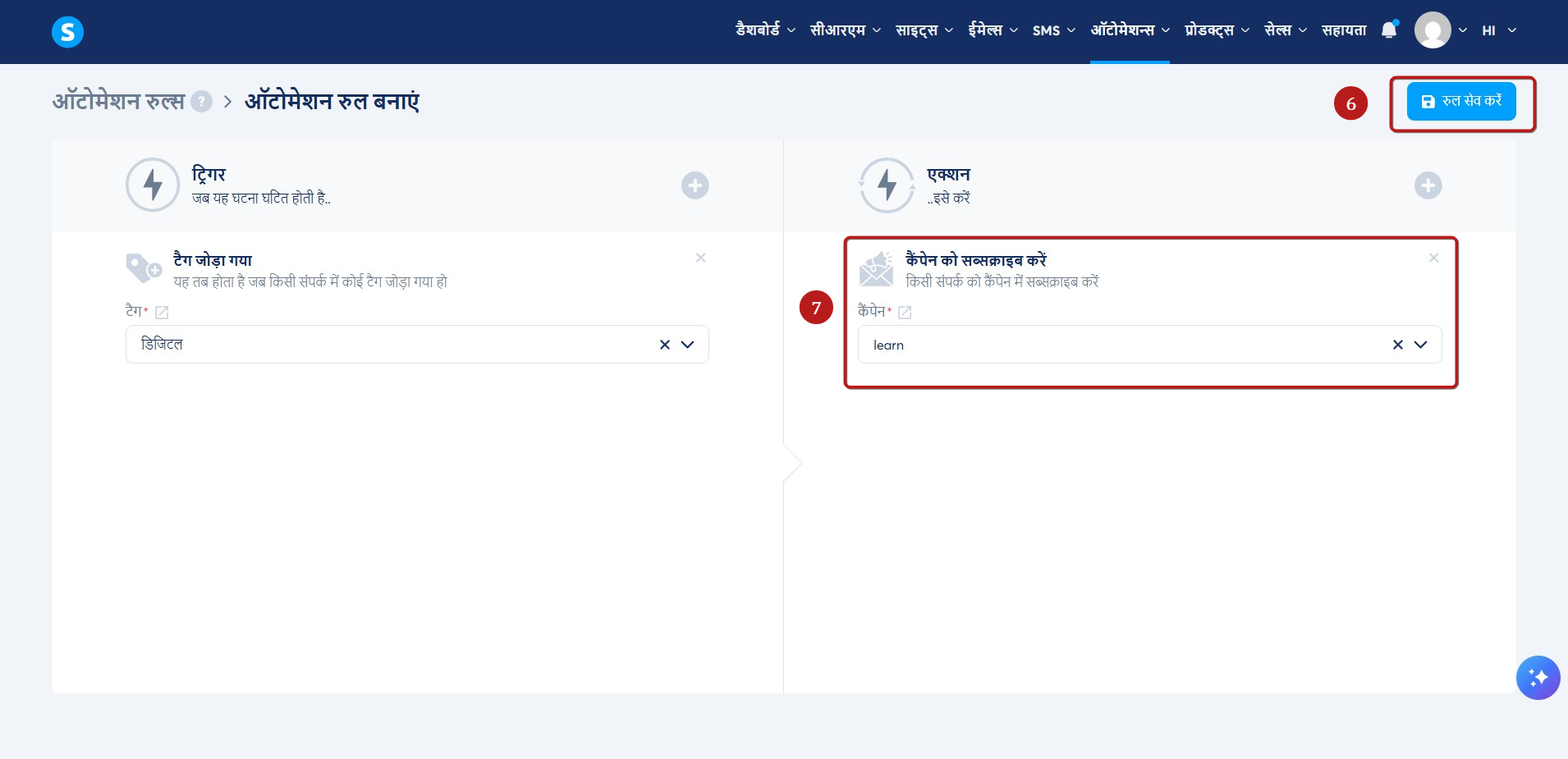 पुष्टि करने के लिए नियम सहेजें (7) पर क्लिक करें।