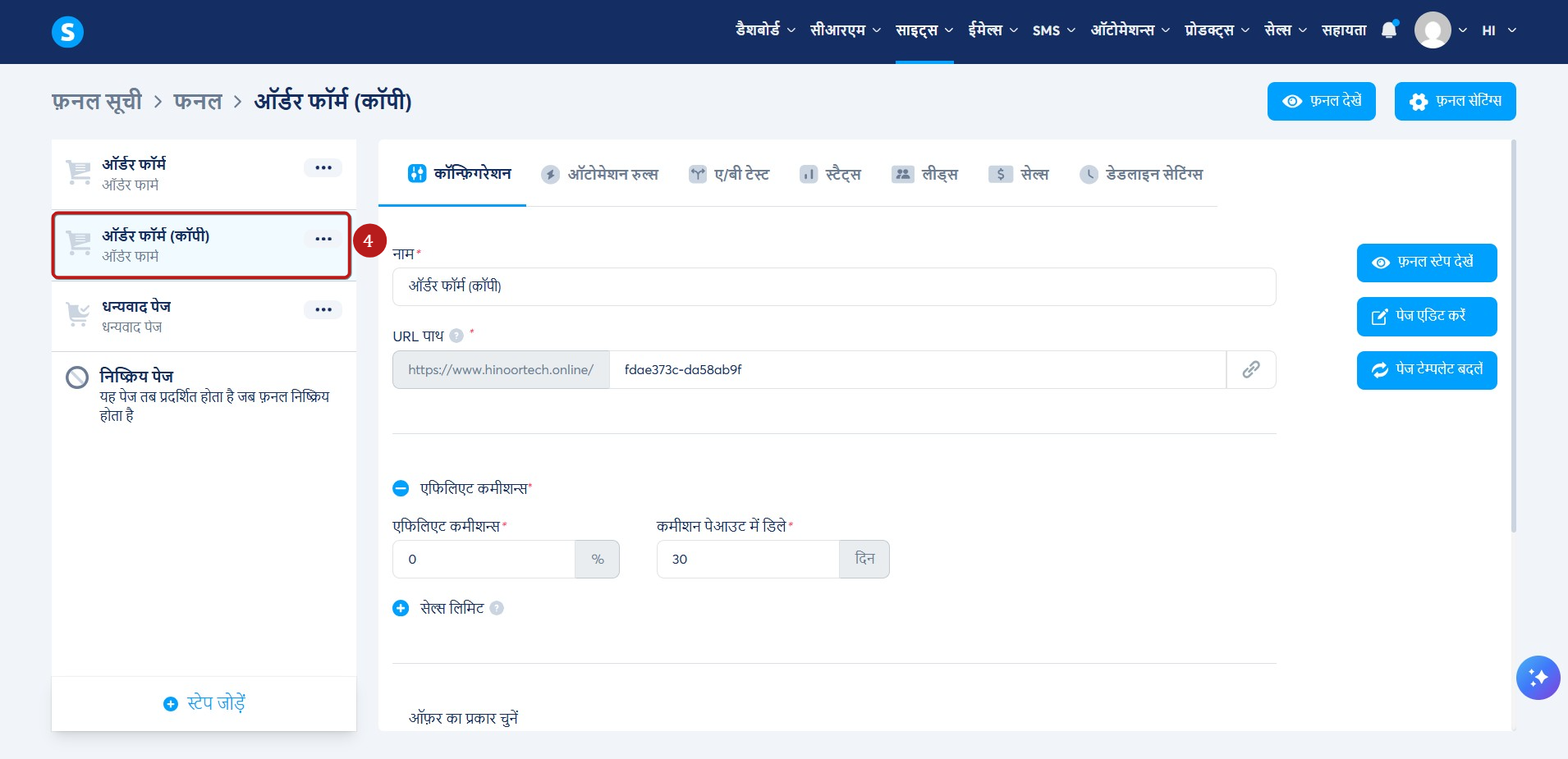 एक सेल्स फ़नल से पेज को कैसे मूव करें, डुप्लिकेट करें और डिलीट करे