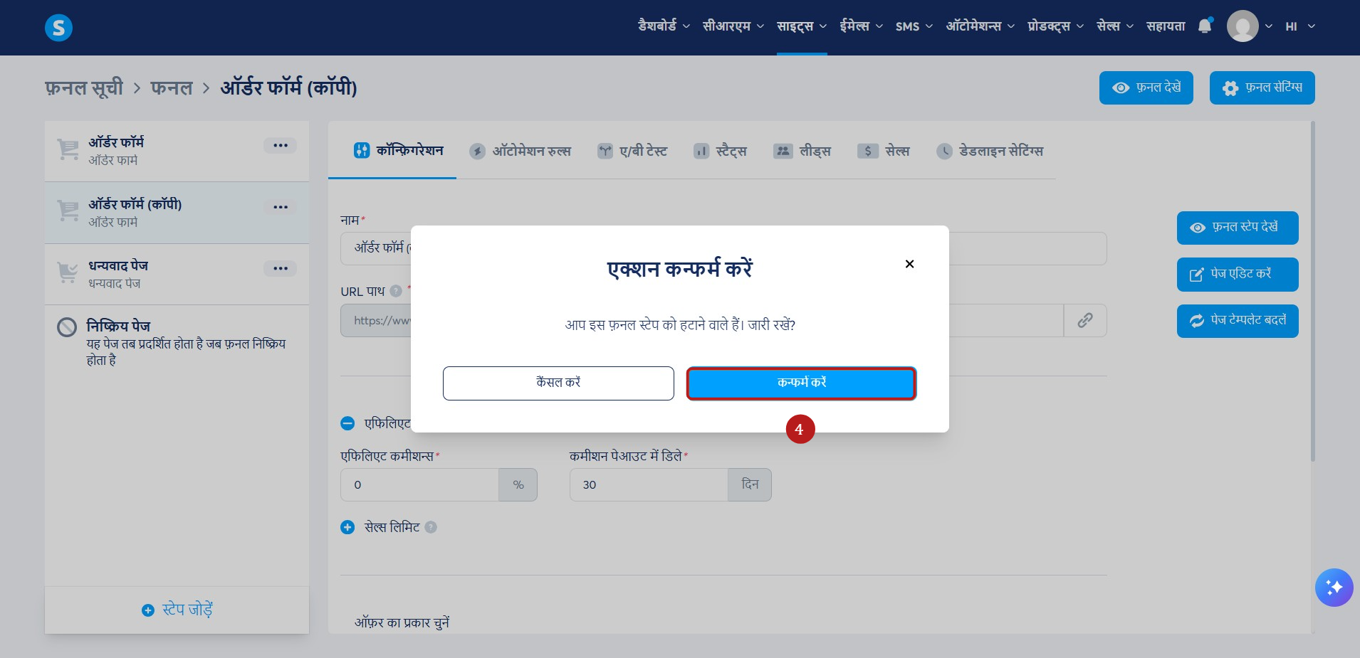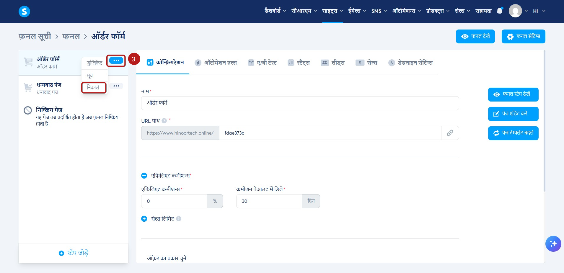 3. विक्रय फ़नल से कोई पृष्ठ हटाने के लिए: