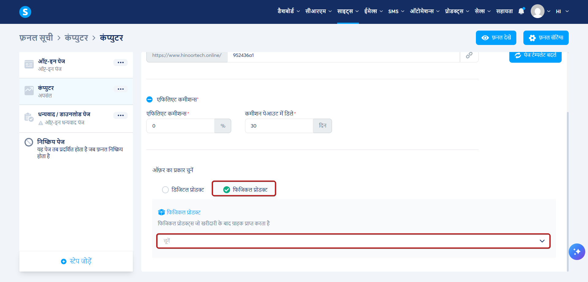 इस पेज पर आप वह प्रोडक्ट डालेंगे जिसे आप बेचना चाहते हैं। ऐसा करने के लिए, दो ऑफ़र प्रकारों में से चुनें: डिजिटल उत्पाद या भौतिक उत्पाद।