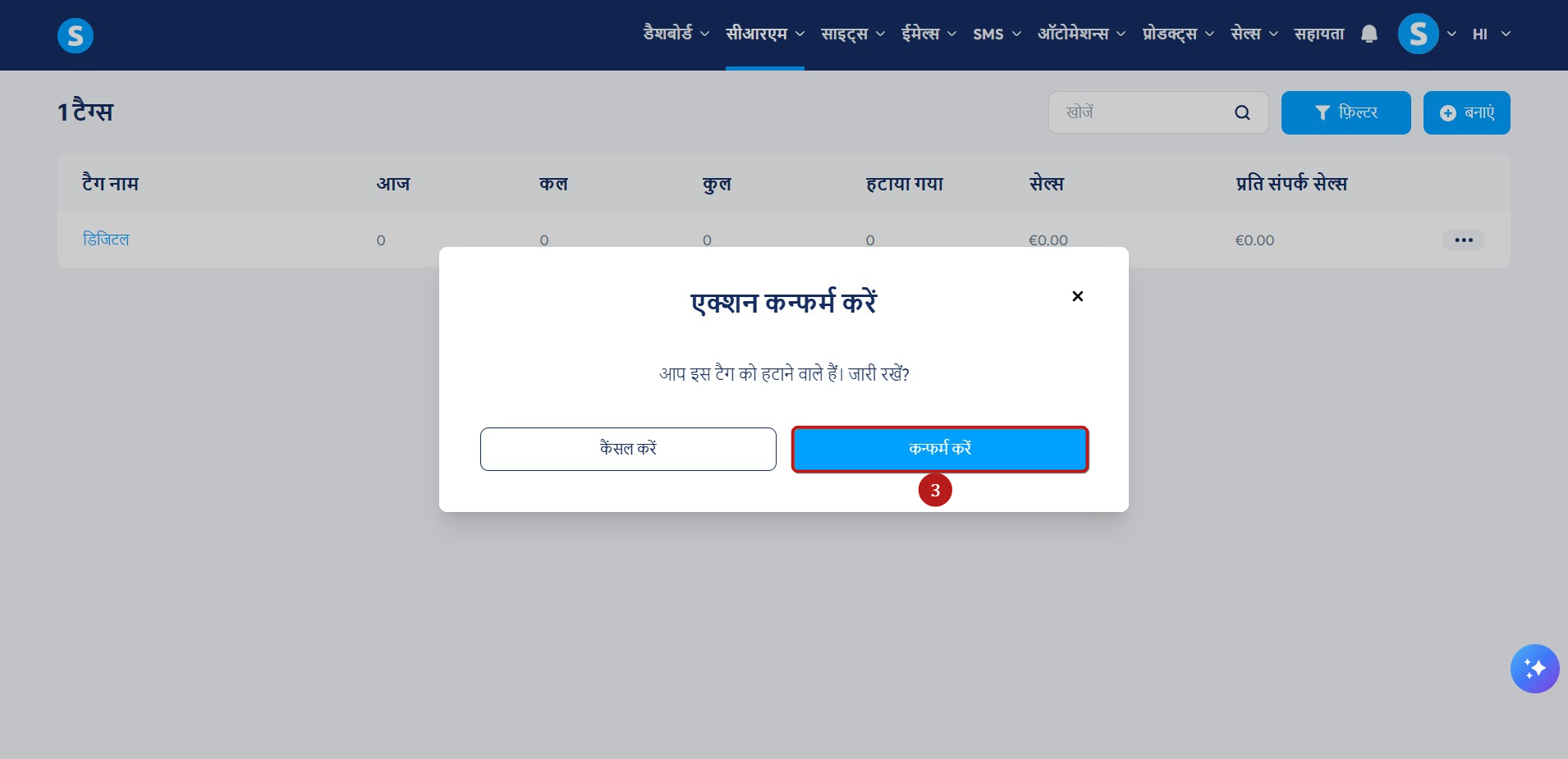 अंत में, टैग को स्थायी रूप से हटाने के लिए कन्फर्म करें (3) पर क्लिक करें।
