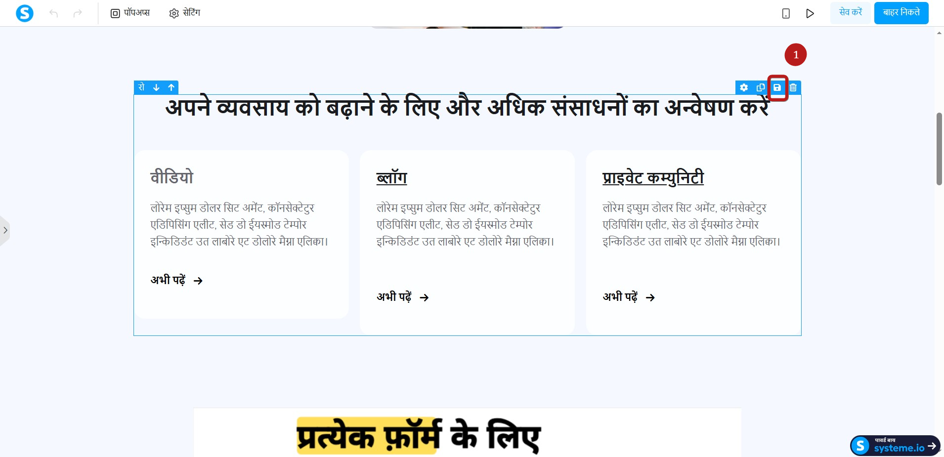 जिस ब्लॉक को आप सेव करना चाहते हैं, वहां माउस कर्सर रखें, और उस ब्लॉक को सेव करने के लिए फ्लॉपी डिस्क के आइकन पर क्लिक करें ( 1)।