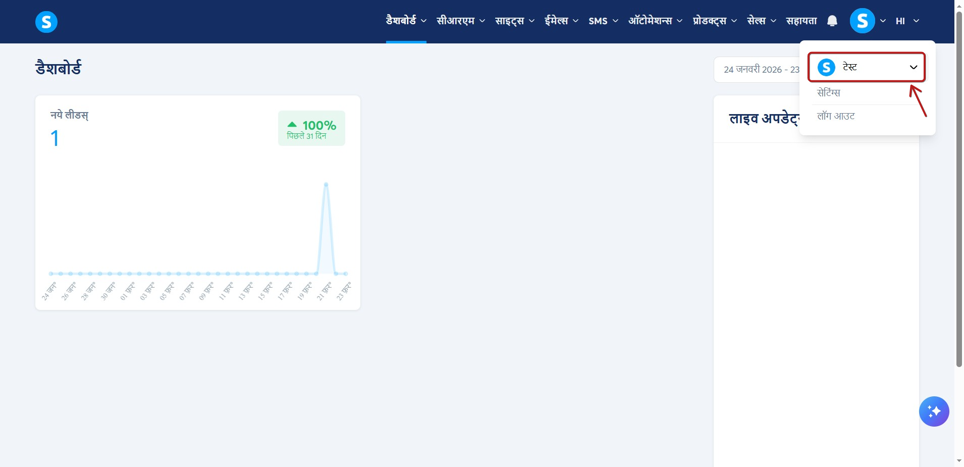 - आप प्रोफ़ाइल चित्र पर क्लिक करने के बाद दिखाई देने वाले उप-खाते के नाम की जाँच करके पुष्टि कर सकते हैं कि आप वास्तव में उप-खाता स्तर पर हैं।