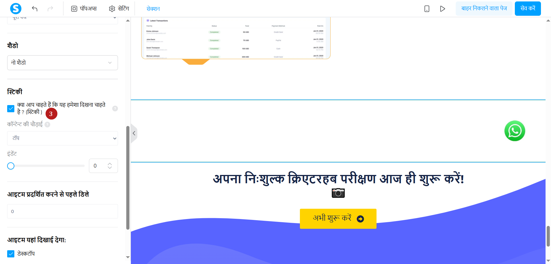 - लेबल किए गए बॉक्स की जाँच करें क्या आप चाहते हैं कि यह हमेशा दिखाई दे? ( स्टिकी सेक्शन ) स्टिकी सेटिंग्स को सक्षम करने के लिए।