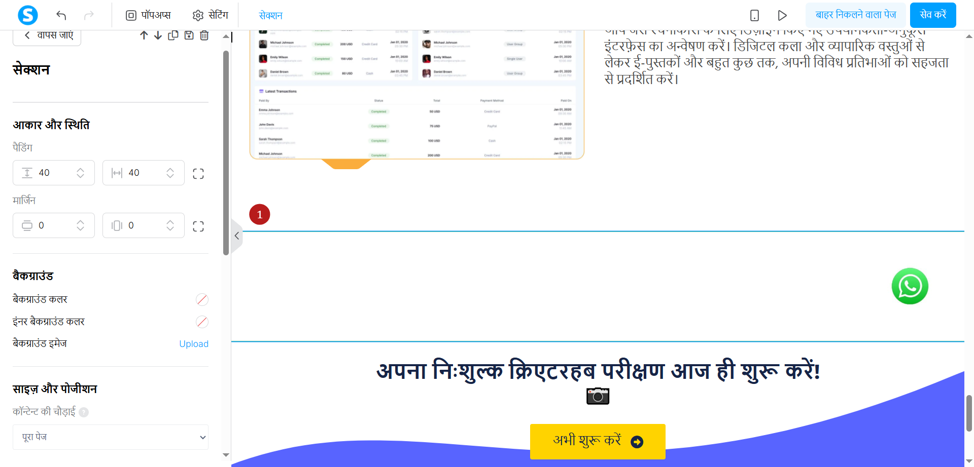 - पेज एडिटर खोलें और उस सेक्शन पर क्लिक करें जिसे आप इसकी सेटिंग्स खोलने के लिए दृश्यमान रखना चाहते हैं।