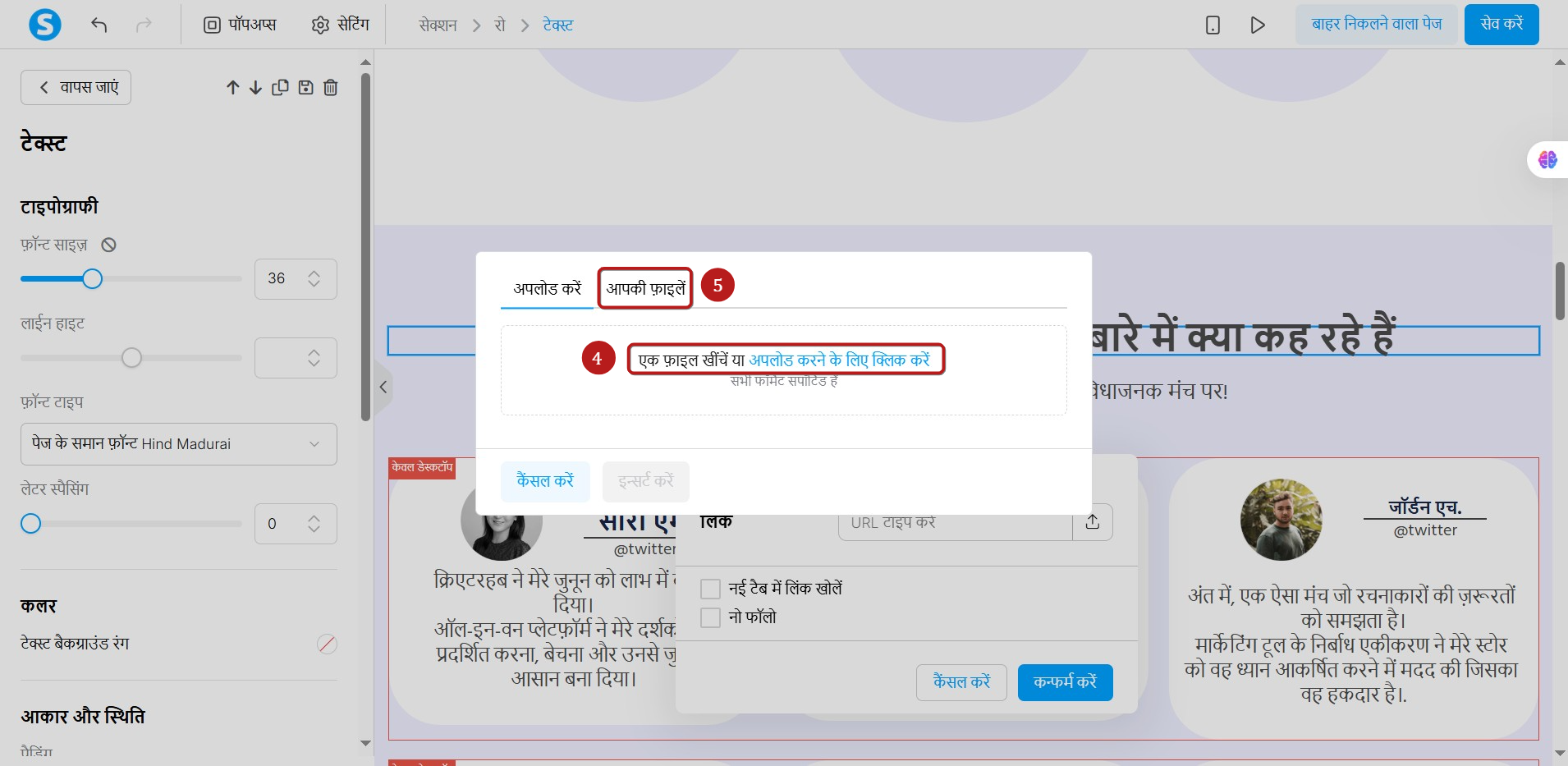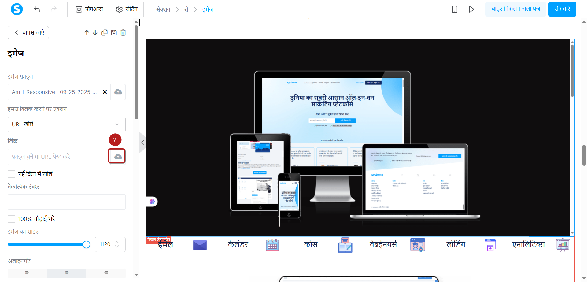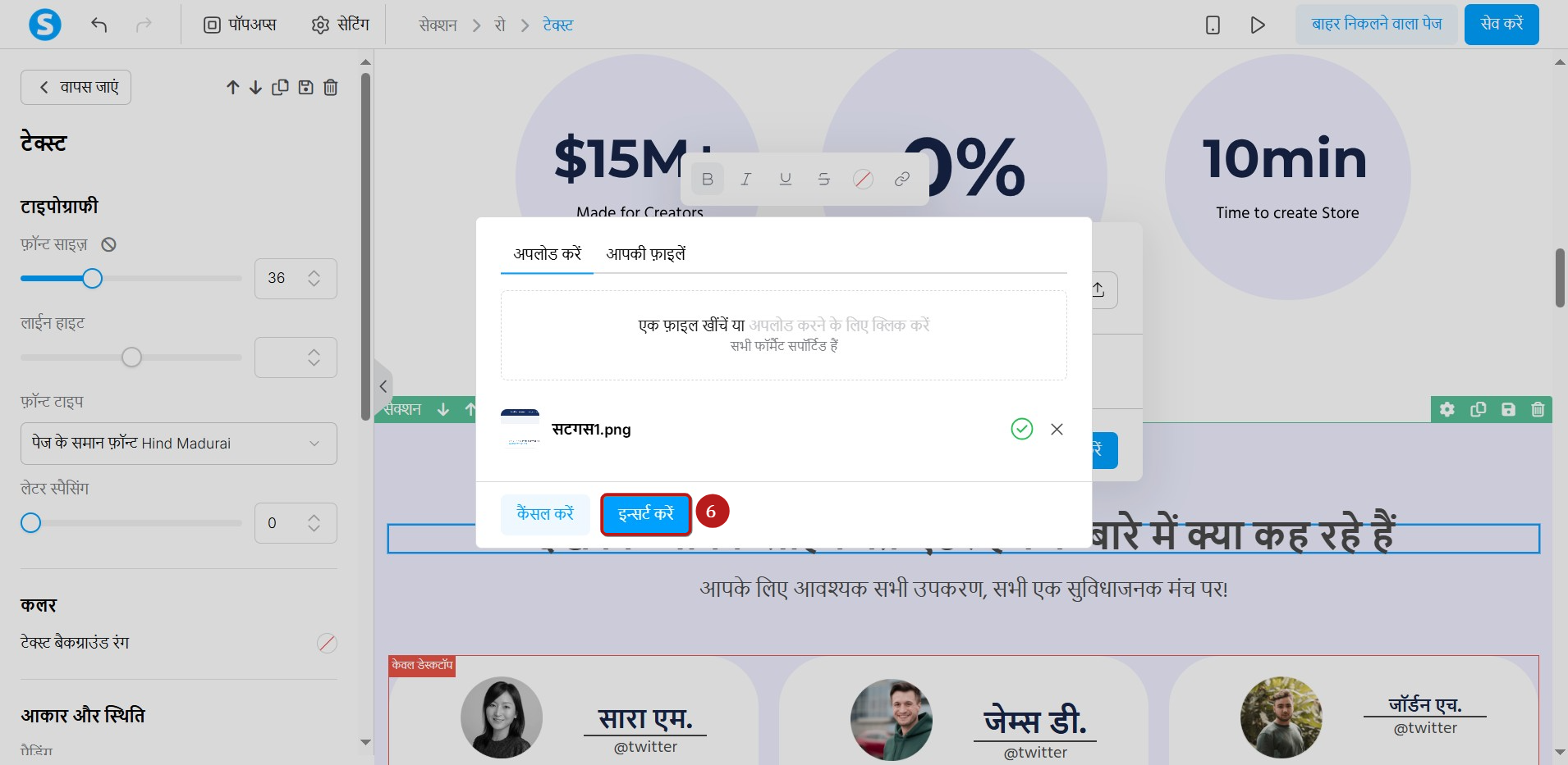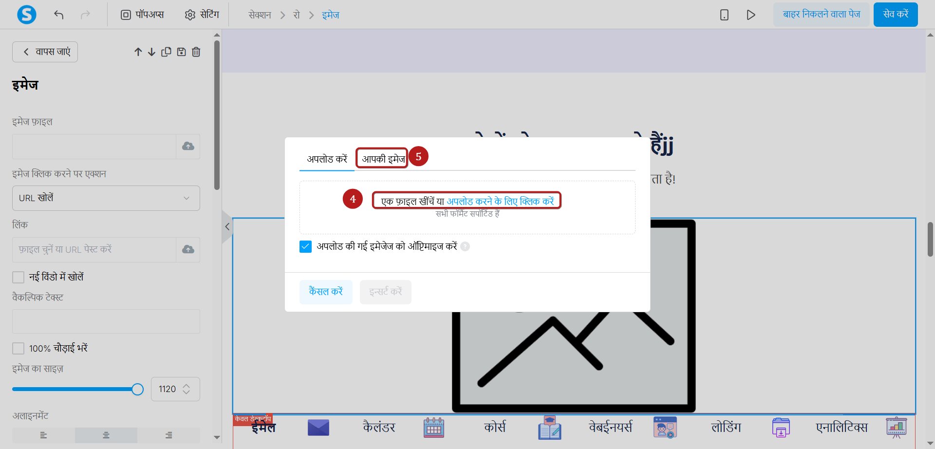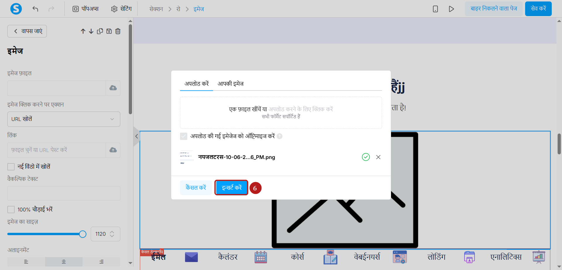 इन्सर्ट (6) पर क्लिक करके अपने पेज पर इमेज अपलोड करें।