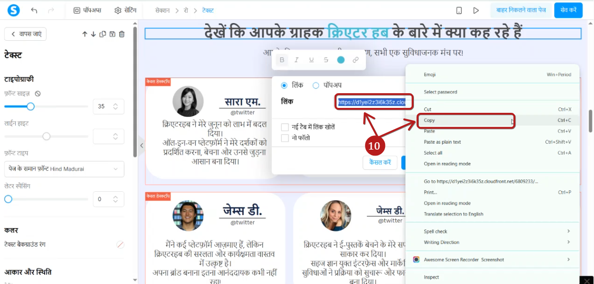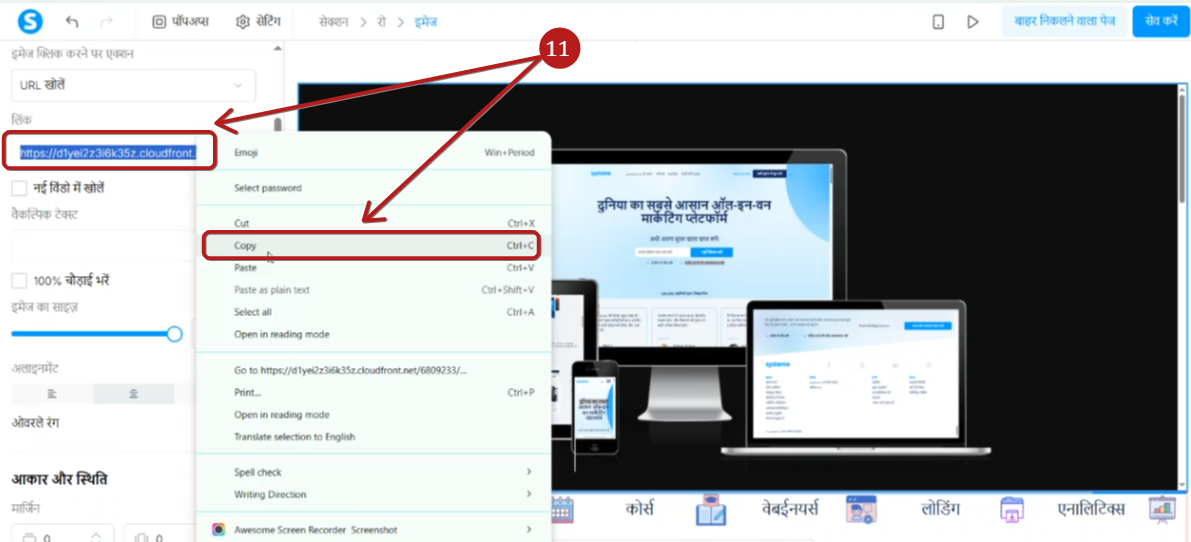 अब, फ़ाइल के लिए एक सीधा लिंक साझा करने के लिए, बस Systeme.io में उत्पन्न URL को कॉपी करें। बस अपने माउस के साथ इस पर राइट-क्लिक करें और लिंक (11) कॉपी करें।