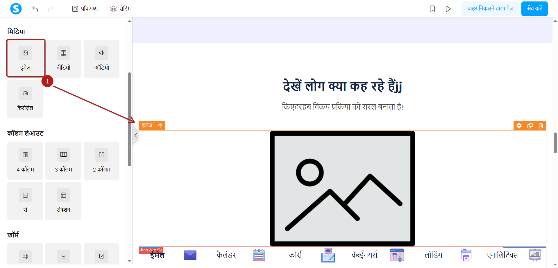 इमेज एलीमेंट को ड्रैग करके से अपने पेज (1) पर ड्रॉप कर दे दें।