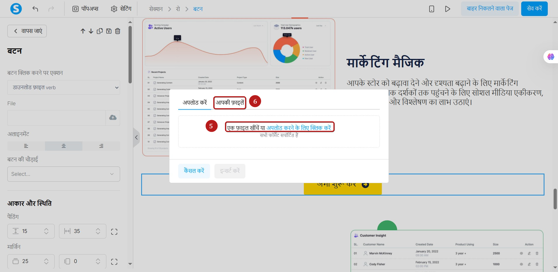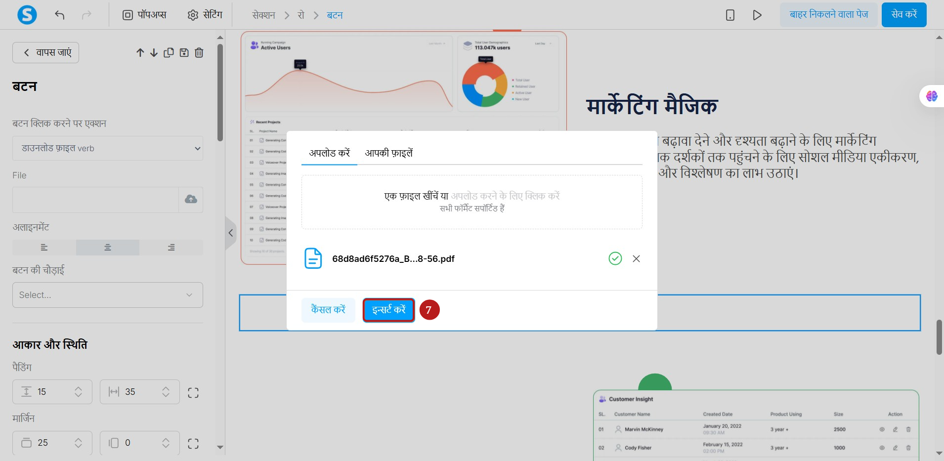 एक बार फ़ाइल जोड़ने के बाद इन्सर्ट (6) पर क्लिक करें।