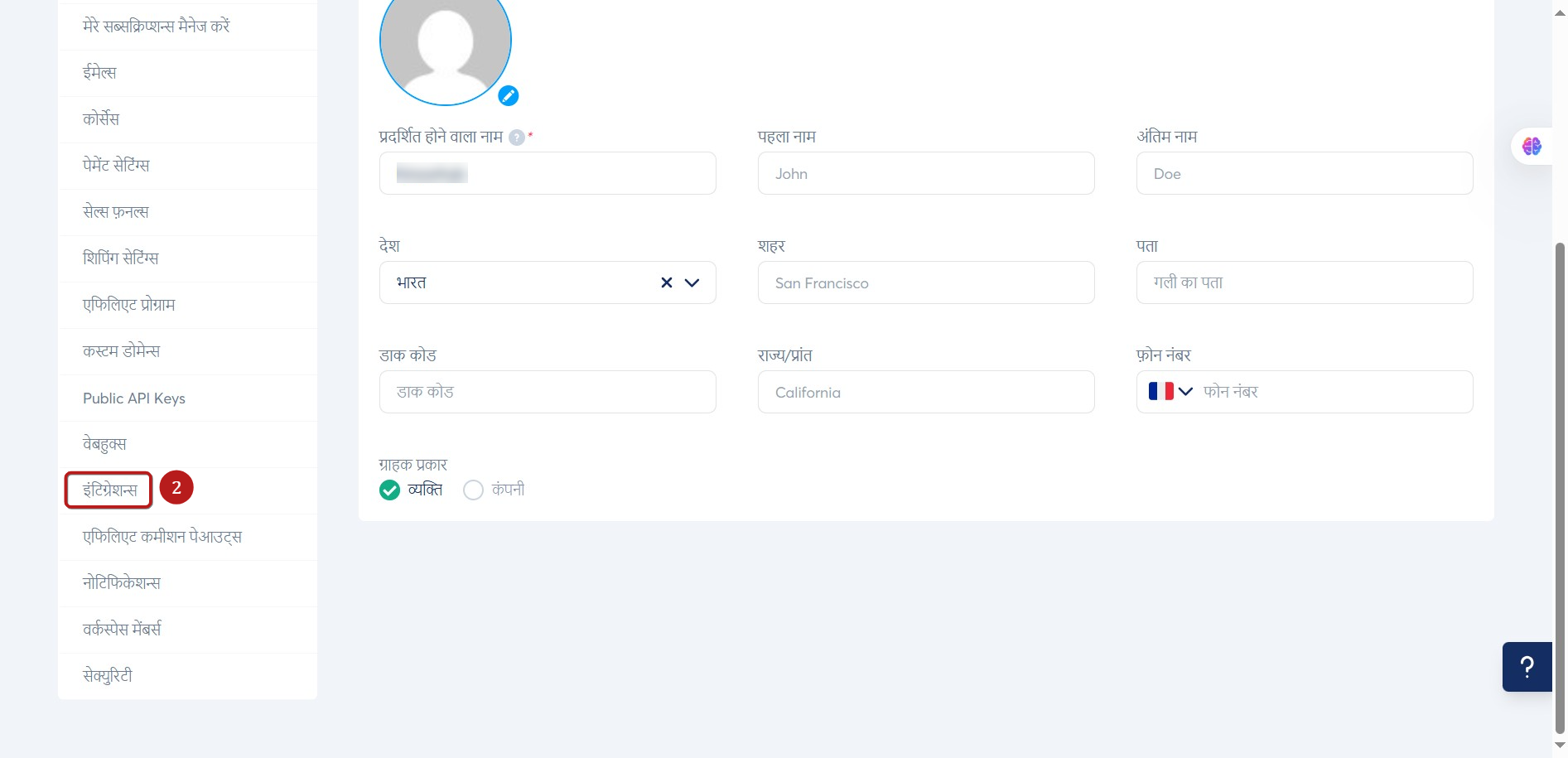 बाईं ओर मेनू में, इंटीग्रेशन्स (2) तक नीचे स्क्रॉल करें।