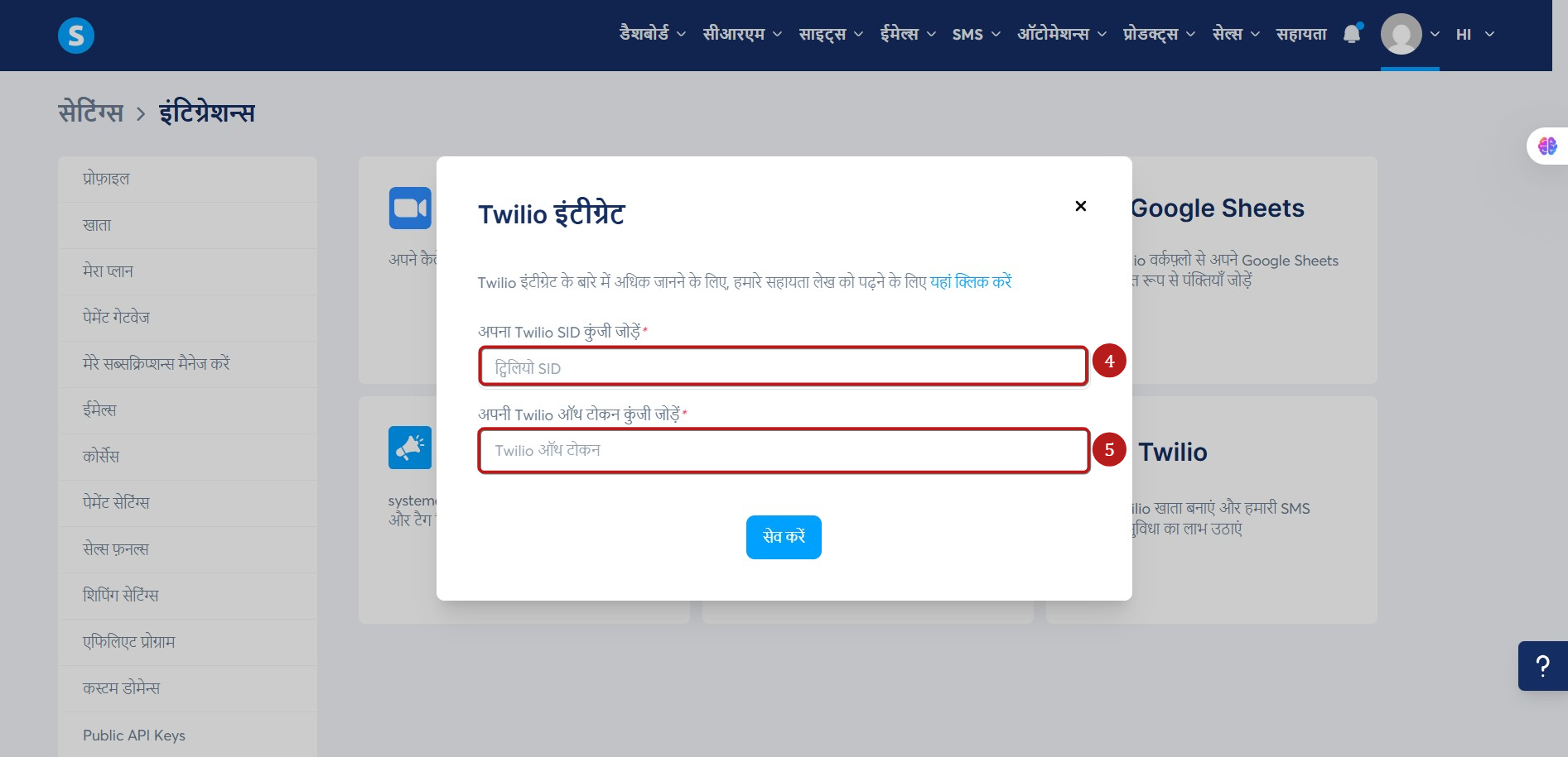 अपने Twilio खाते को systeme.io से कनेक्ट करें